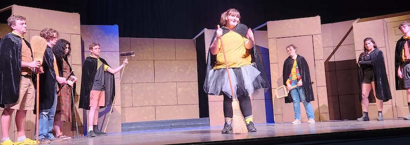 Otter Valley Theatre Director Jeffery Hull has wanted to produce “Puffs” since he first found out about it. It has a smaller cast than some of the larger Walking Stick Theatre productions, but with the arrival of Katie St. Raymond to direct a separate play featuring middle school students—“A Midsummer Night’s Dream,” just three weeks ago—it was now possible. The play features just 17 student actors from the high school, and several additional students handling the backstage and technical aspects.