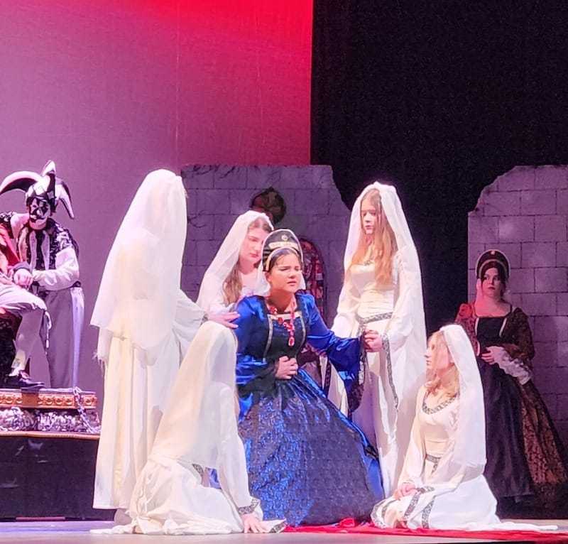 The festival piece this year is “Queens,” by acclaimed playwright Kristen Doherty, and directed at Otter Valley by theatre director Jeffrey Hull. Like the Broadway musical “Six,” this play presents a fictionalized approach to the story of the six wives of Henry VIII, but from the wives’ point of view. In “Queens,” King Henry VIII is trapped in purgatory, bound to his throne, and forced to relive the sins he committed against his queens.